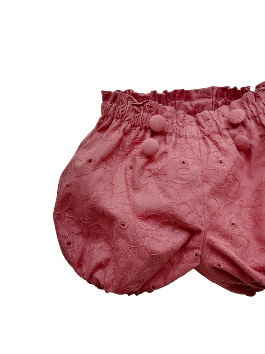 Chambray Little Robin's Romper, blue with embroidered flowers