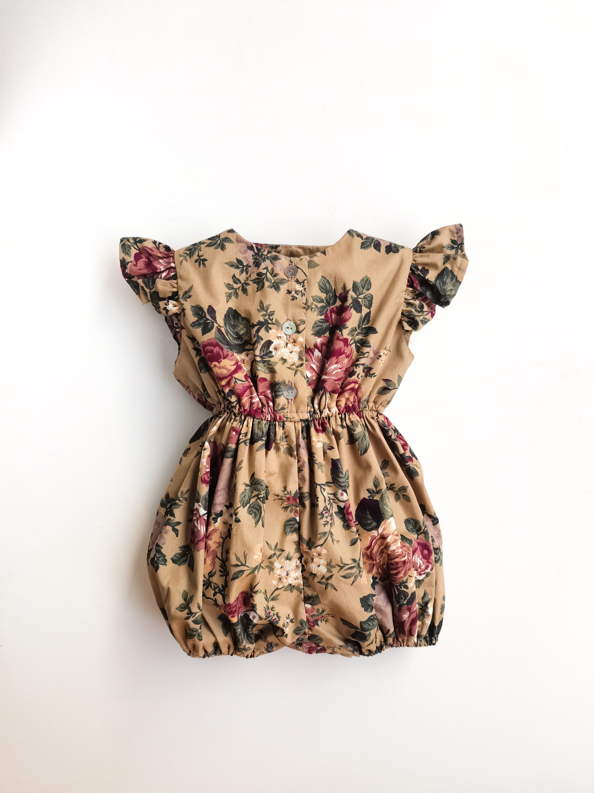 This stylish romper features a delicate frill sleeve, beautiful shell buttons, and fastening leg poppers for easy changing.